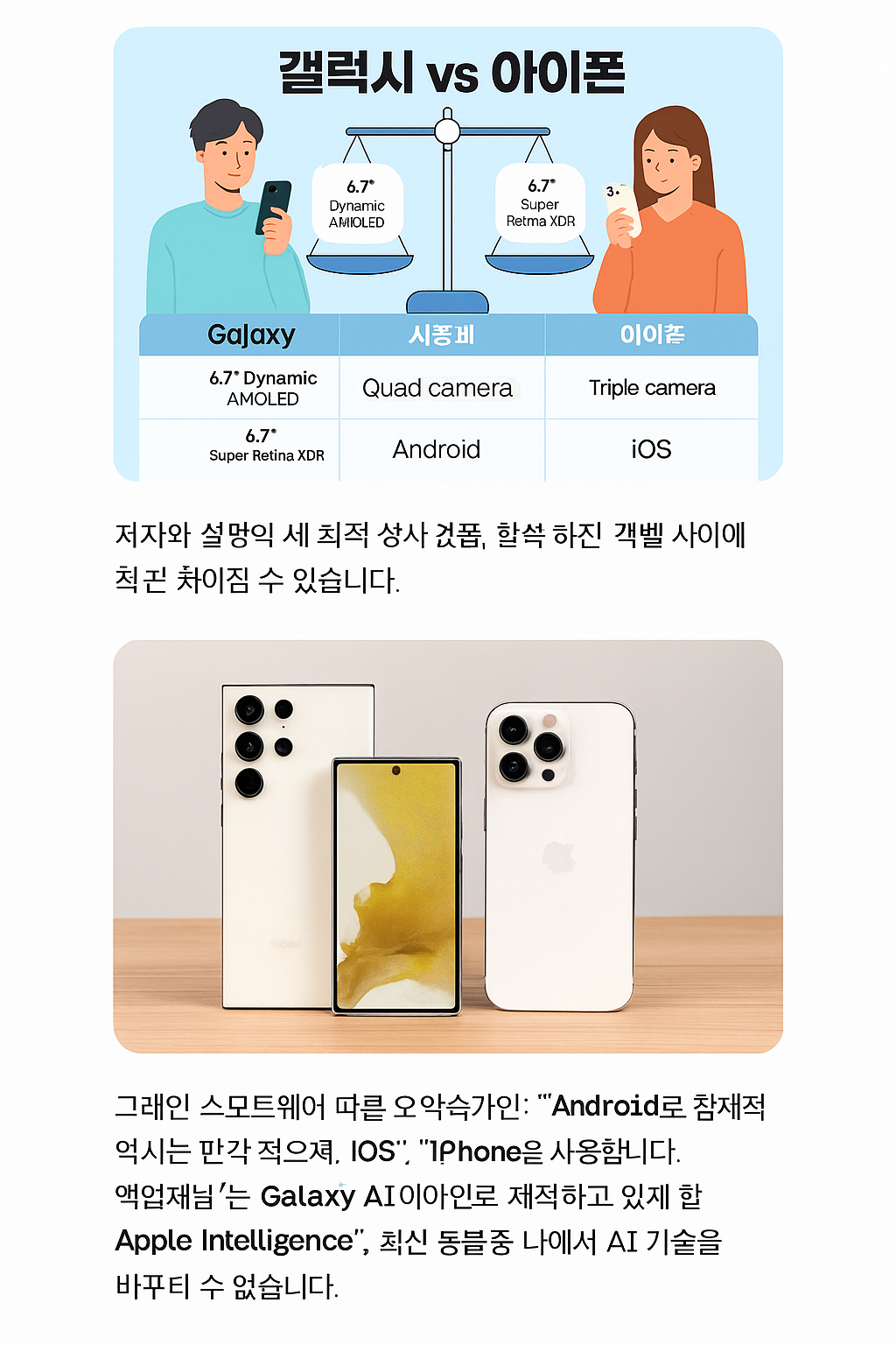 오늘은 갤럭시 vs 아이폰의 장단점을 객관적으로 비교해 드립니다.